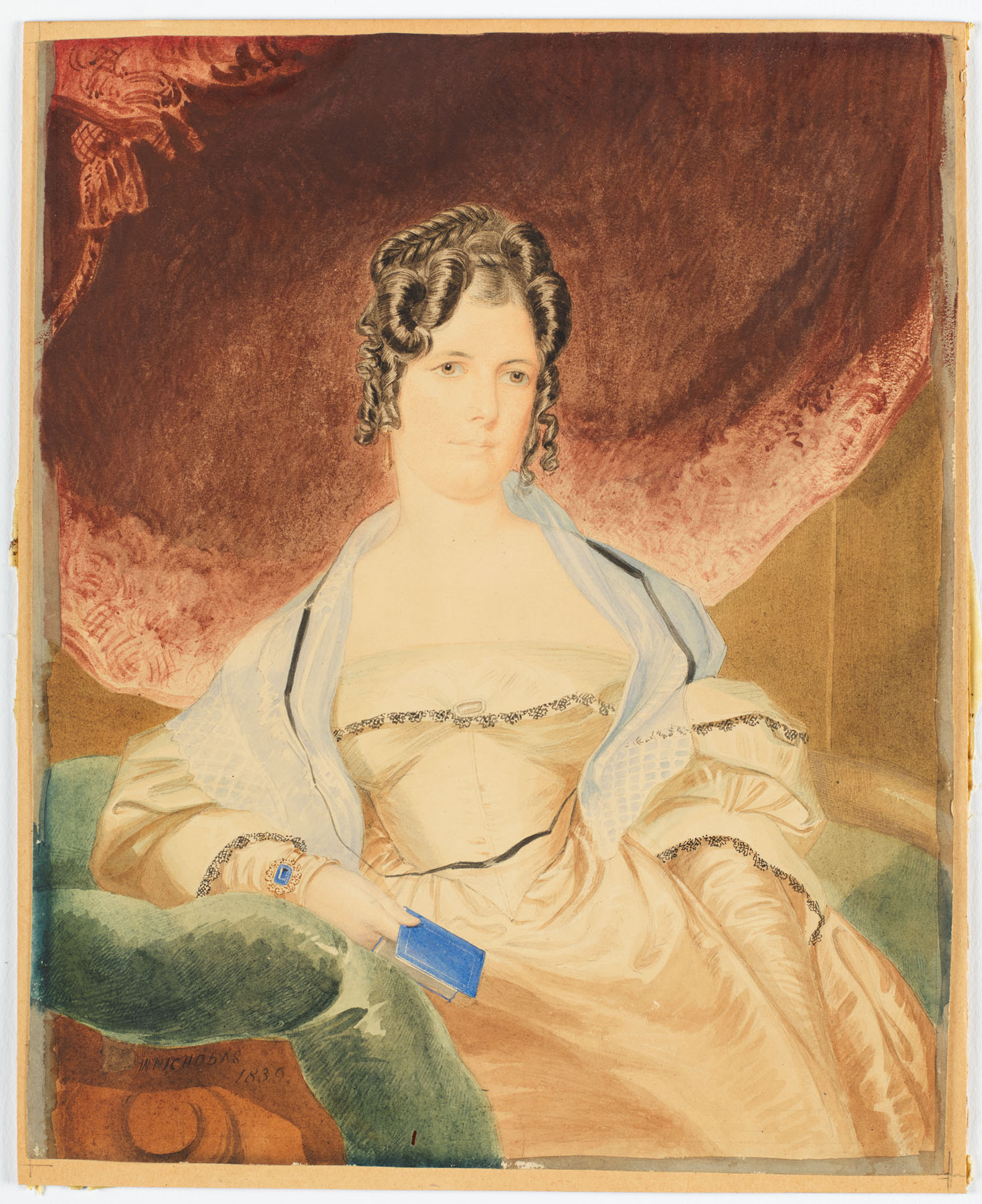William Nicholas (1807-1854), watercolourist, etcher and lithographer, was best known as a portraitist. He was in demand soon after his arrival at Sydney in the ‘Roslyn Castle’ on 25 February 1836. Surviving portraits prove he quickly attracted the colony’s social and professional élite. By November 1840 Nicholas was reported as ‘conducting Mr Barlow’s business’ and January 1842, he set up on a grander scale, advertising as a ‘miniature painter on ivory and in watercolours, lithographer and draughtsman’. He provided an attiring room for ladies to change into their best clothes at his studio-residence, 6 Elizabeth Street South, and charged from 1 to 3 guineas for his portrait miniatures. Taking an active part in Sydney’s early art exhibitions, Nicholas died in Sydney, aged 48, on 23 June 1854.