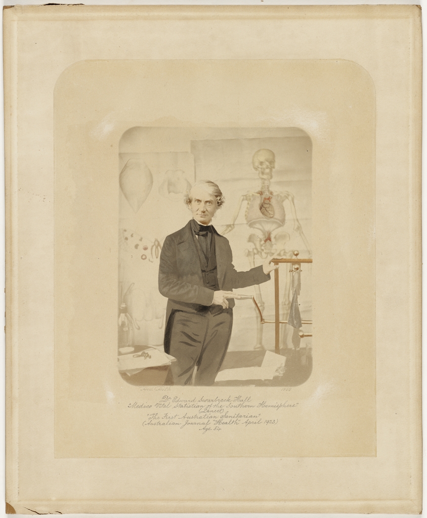 The honour of being the first man in Australia to preach the gospel of public health with an inspired intelligence and courageously to fight for health reforms in the face of great obstruction belongs to Dr Edward Swarbreck Hall, M.R.C.S., of Hobart.